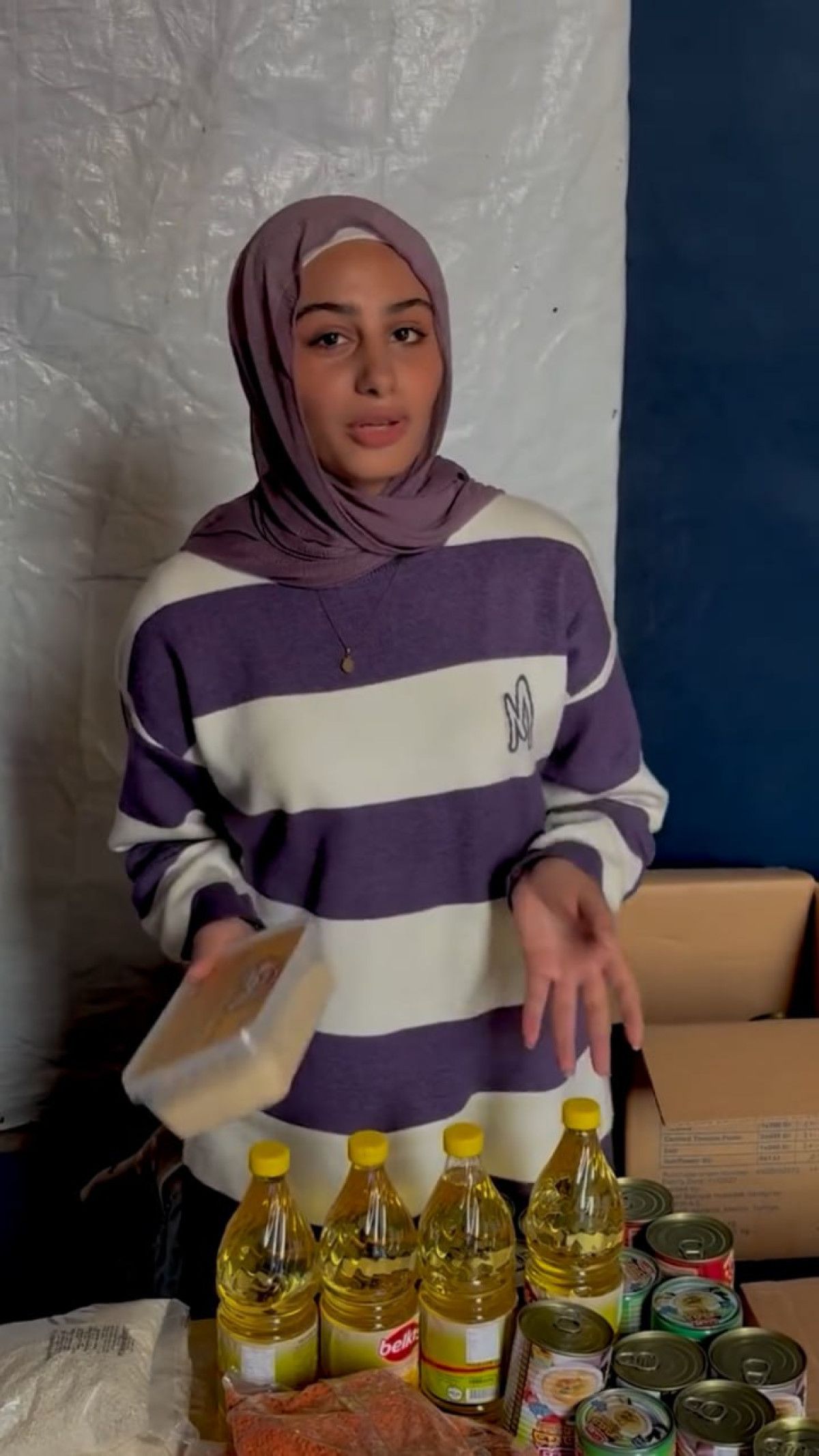 Gazzeli Sultan videoya “Bugün sonunda bir gıda kolisine kavuştuk, yaklaşık 6 aydır bize hiçbir insani yardım ulaşmamıştı ama bugün ablamla birlikte bugün gidip koli alacağız.” sözleriyle başladı.