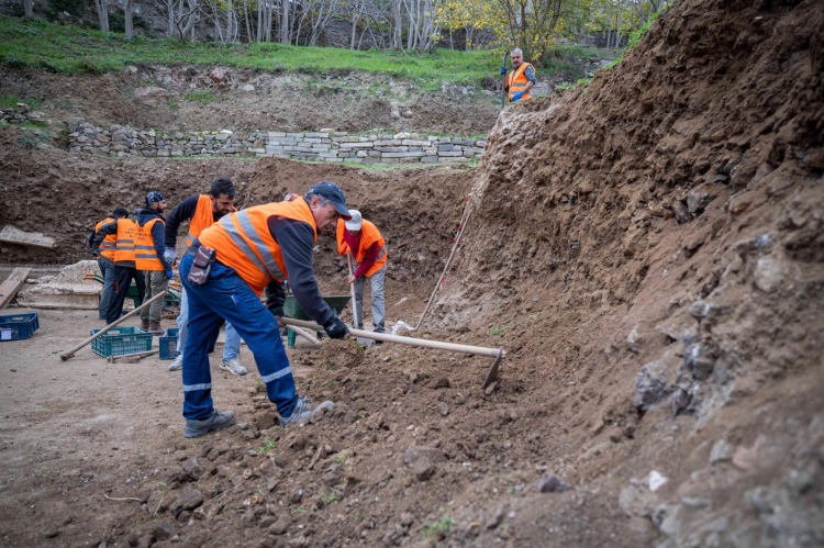 Kazıda görevli arkeologlarla buluşan ve kürekle çalışmalara katılan İzmir Büyükşehir Belediye Başkanı Dr. Cemil Tugay, “Ellerinize sağlık. Ben yeniden geleceğim. Yanınızdayız, hiç merak etmeyin” şeklinde konuştu. Başkan Tugay, bölgedeki taşıt yollarını da düzenleyeceklerini söyledi.